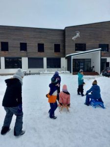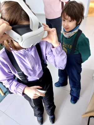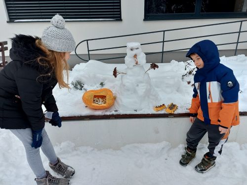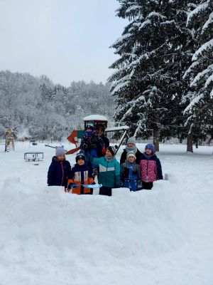 Kad se vani minus smanjio, radili smo anđele u snijegu blistavom od sunca, a uspjeli smo napraviti i snjegovića. Vratili smo se u Centar ugrijati i na VR naočalama gledati zanimljivosti koje imamo u okolici: kulu, slap, izvor, četiri rijetke i zaštićene životinjske vrste, a i virtualno smo letjeli na zmaju!