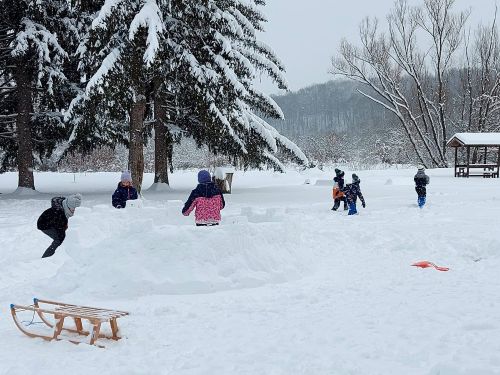 Nakon ručka, uslijedila je bitka za obranu snježne kule od osvajača, a svi su se žestoko borili snježnim grudama. Igralište pod debelim snježnim pokrivačem bilo je prilika za zaigrati nogomet kao nikad do sad, prteći nogama snijeg dok se lopta nastoji probiti do gola!