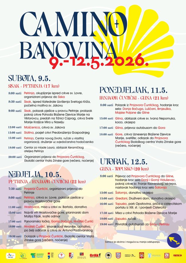 Camino Banovina započinje u subotu 09. i traje do utorka 12. svibnja 2026.godine, a nama je drago biti njegov dio petu godinu za redom što potvrđuje kvalitetu našeg okruženja, usluge i domaćinskog ambijenta.